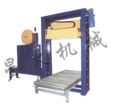 焦作打包機(jī) 客戶名稱:河南焦作斯美特食品有限公司 設(shè)備名稱:頂捆穿箭式托盤全自動(dòng)捆扎機(jī)